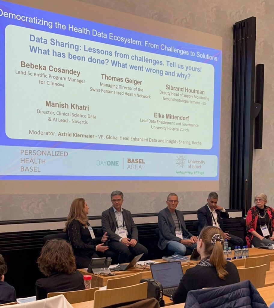 Dr. Bebeka Cosandey (Lead Scientific Program Manager for Clinnova, Basel) contributed as a speaker and panelist, sharing insights on Clinnova’s federated, cross-border data ecosystem. The presentation demonstrated how secure, interoperable, and actionable patient data can empower clinicians and researchers, drive innovation, and support evidence-based decision-making.